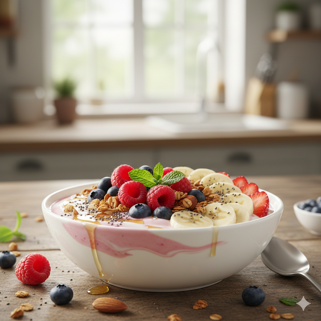 - 오트밀 + 플레인 요거트 + 과일 조합
